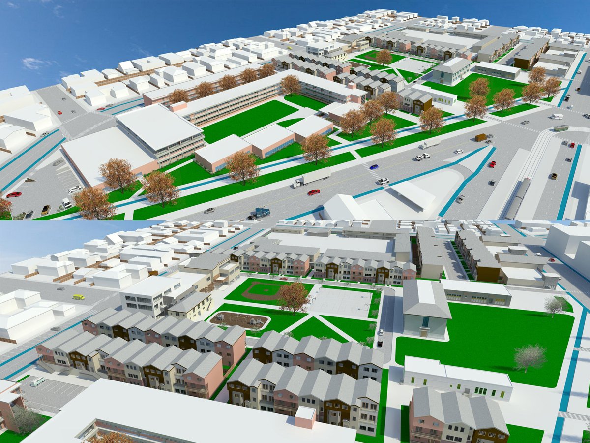 This project involved developing a comprehensive master plan for a large property containing multiple existing buildings that the client wished to preserve and repurpose. The goal was to create a vibrant, multi-use community that integrates new housing, commercial amenities, and public spaces while honoring the character of the original structures. Also, establish a long-term vision that respects the site’s history while introducing new residential and commercial development to support both future residents and the surrounding neighborhoods.